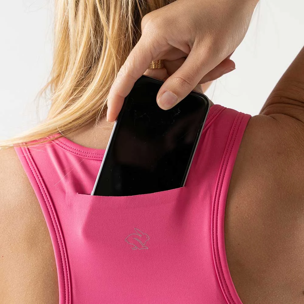 Run with confidence. Our best-selling sports bra minimizes bounce while securing the essentials. Tucked snugly into the laser-cut pocket between your shoulder blades, your phone is easily accessed on the go.Â